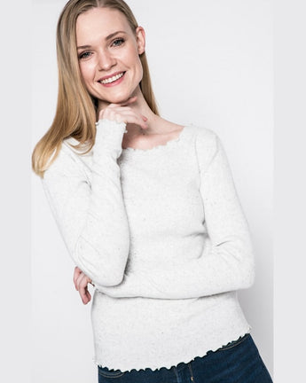 Model cu decolteu de tip barca, confectionat din tricot subtire.