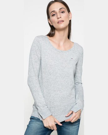 Model cu decolteu rotund, confectionat din tricot subtire.